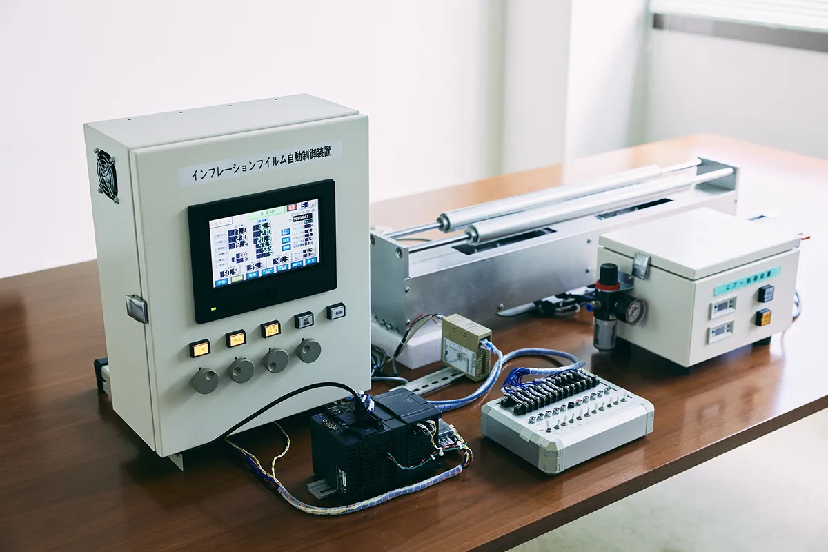 IT技術を応用した検査装置や機械の組み込み装置の開発も行っています。 検査装置には、スイッチの特性を検査するSW特性自動検査装置などやセンサーの特性を検査するシステムを開発しています。 組み込み装置にはインフレーション成形制御システムなどがあります。